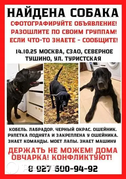 ️Повторно Найден чёрный лабрадор, ищем хозяи...
