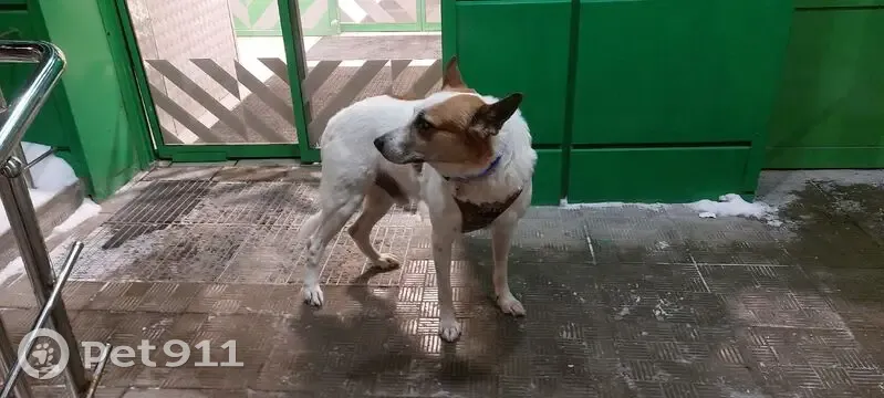 Найдена собака, Москва, фото: Найдена собака, Чертановская улица, 50 к2, Москва - белая с рыжим в шлейке