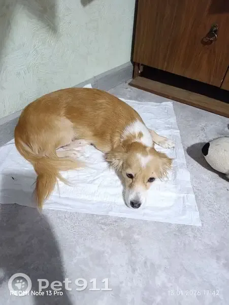Рыжая с белыми пятнами был одет ошейник, нашл...