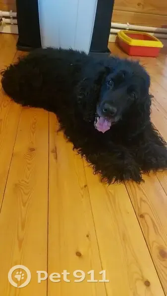 Черный окрас, зеленый ошейник, нашли на прогу...