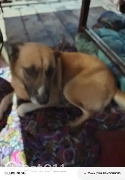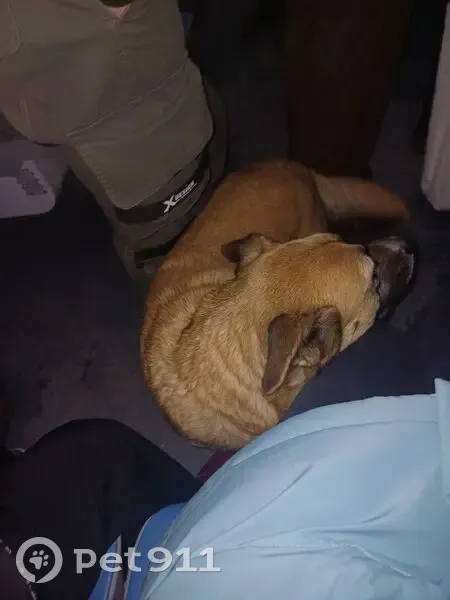 Собака бежево-рыжего цвета, ошейник светло-ко...