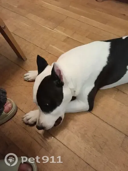 Найдена собака, Челябинск, фото: Найден собака, мужской, улица Румянцева, 26, Челябинск - чёрно-белый стафф 6-7 месяцев
