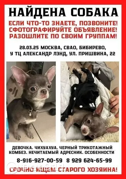Найдена собака, Москва, фото: Чихуахуа найдена у метро Бибирево, Пришвина 22