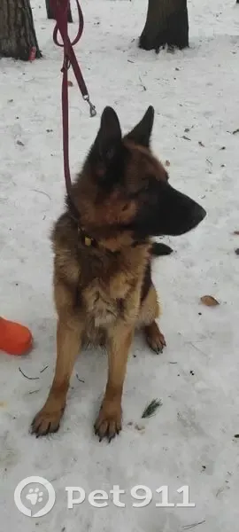 Найдена овчарка кобель в жёлтом ошейнике. При...