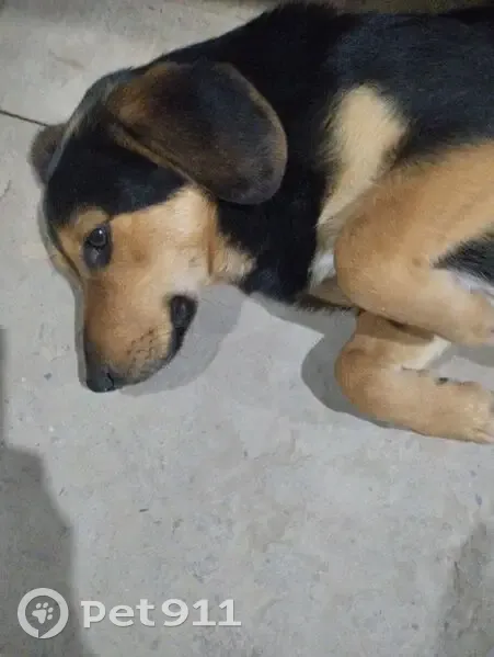 Найден щенок, цвет чёрный с рыжим, на грудке...