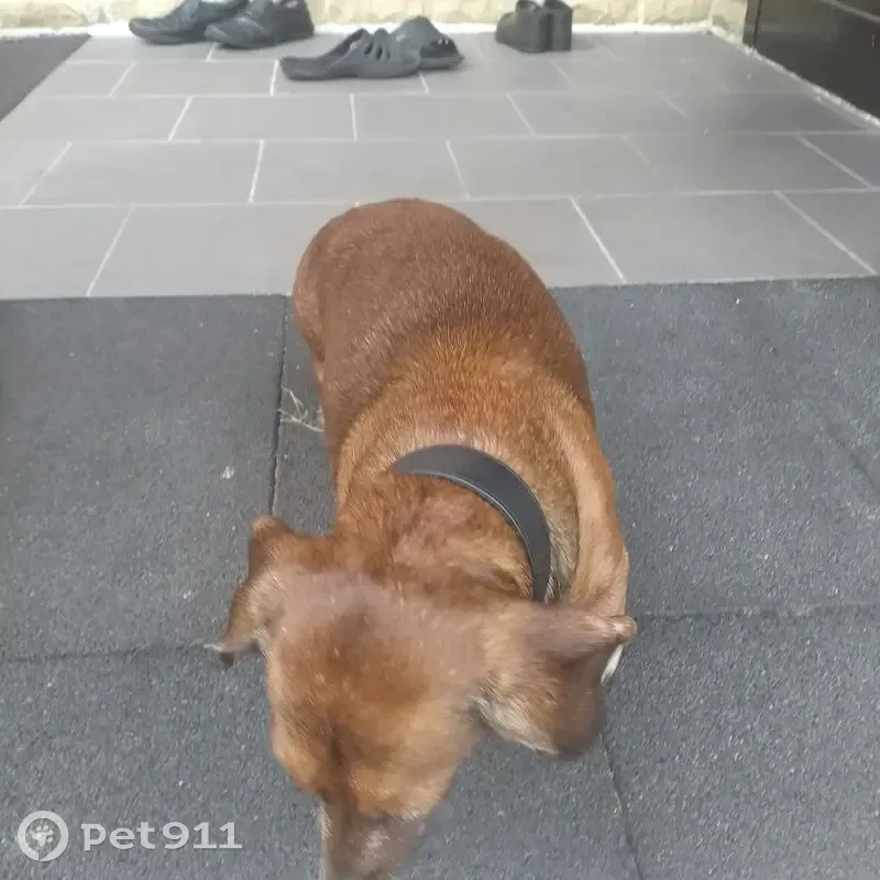 Такса, коричневая,ю, вес порядка 4кг, ошейник...