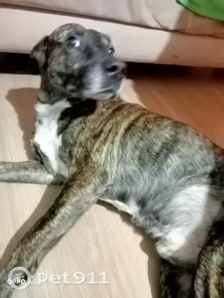 Собака, похожа на Стаффа или питбуля, недавно...