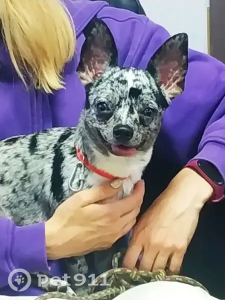 Мраморный чихуа, молодой кобель, рыжий ошейни...