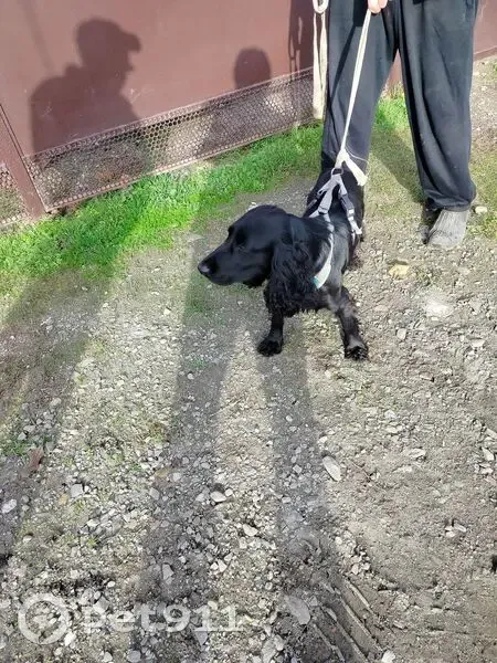 Похож на спаниеля, чёрный. Сосед на улице наш...