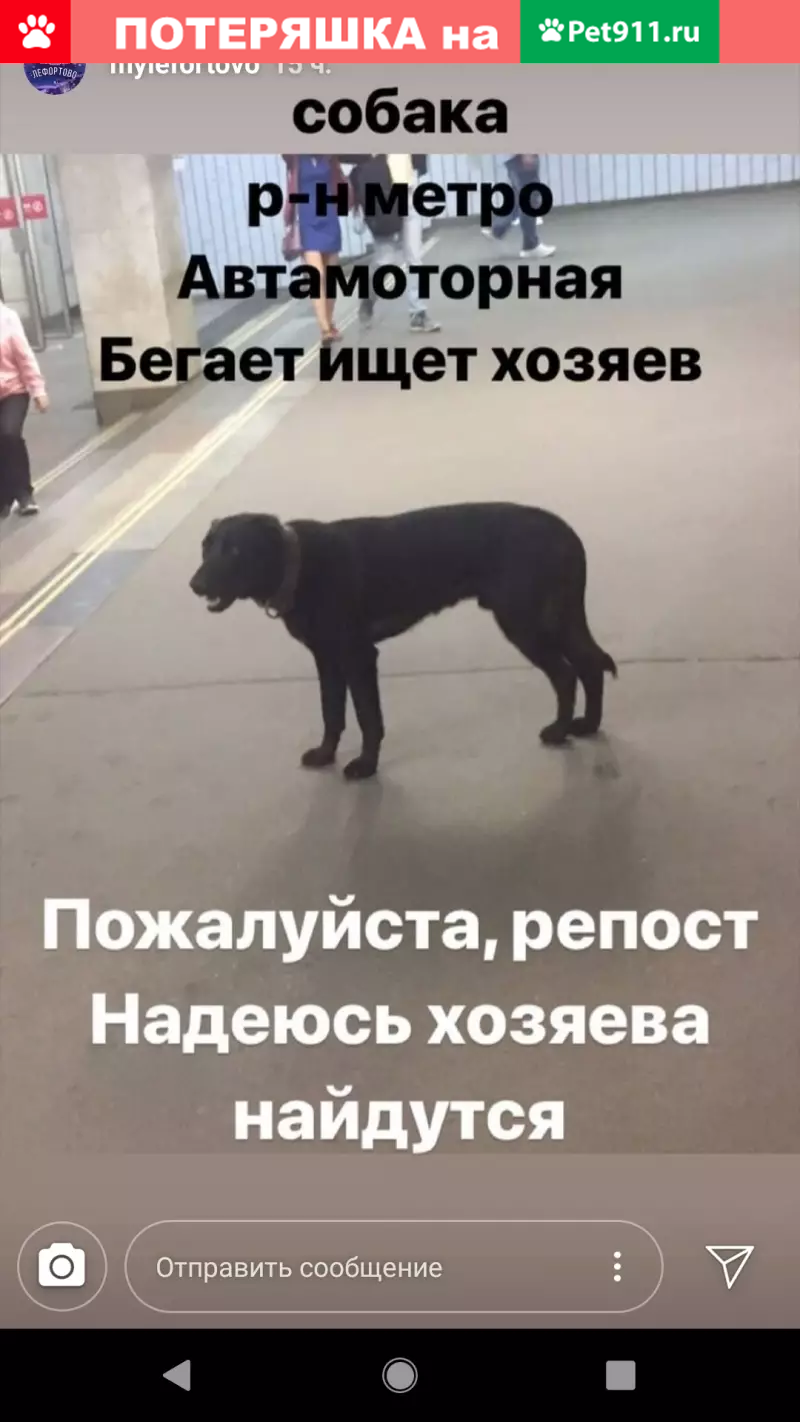 Найдена собака, Москва, фото: Собака с ошейником найдена в Москве (27 символов)
