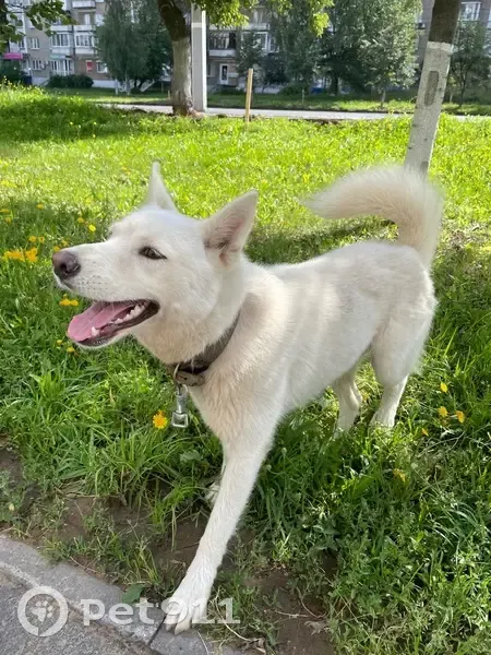 Лайка, полностью белая. Бегала вечером в 22-2...