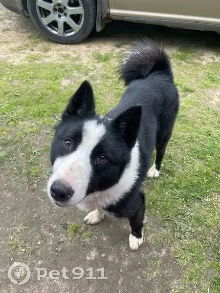 Лайка, кобель. Черно белая. Карие глаза. Моло...