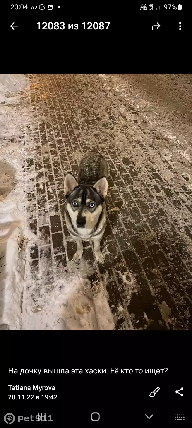 Найдена собака, Москва, фото: Найден хаски на пр-те Будённого 30/8, Москва