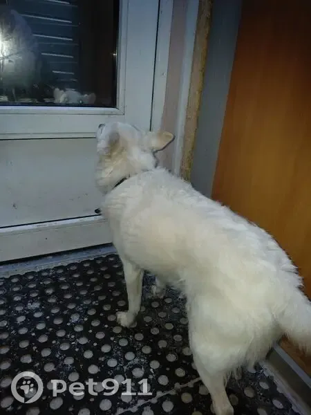 Белая, ошейник есть, на голове болячка. Нашла...