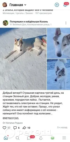 Найдена собака, Привокзальная...
