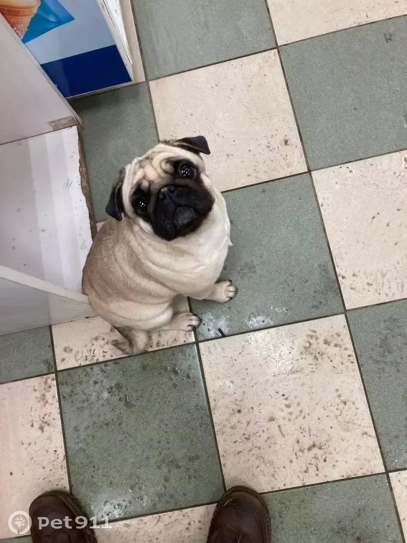Пёс в ошейнике, видно что потерялся. Он очень...