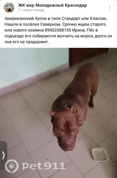 Питбуль найден на Пластуновско...