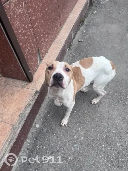 Найдена собака, Ростов-на-Дону, фото: Найдена собака, Магнитогорская улица, 1А, Ростов-на-Дону - питбуль с белым окрасом и рыжими пятнами