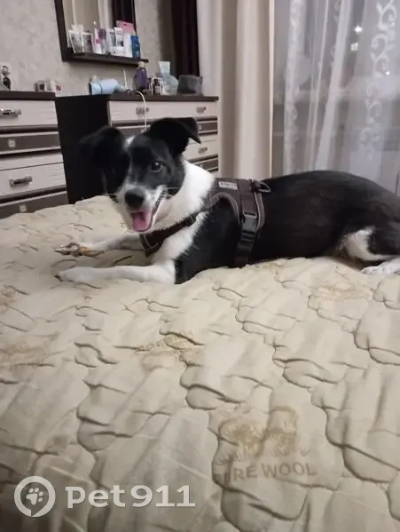 Окрас чёрно-белый, маленькая, со шлейкой кори...