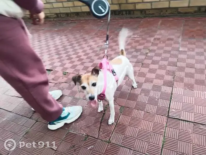 Порода Джек Рассел,белая,с коричневыми пятнам...