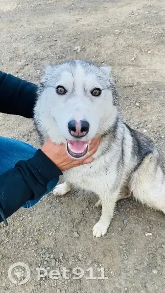 Найдена собака похожа на хаски серная с белым...