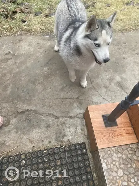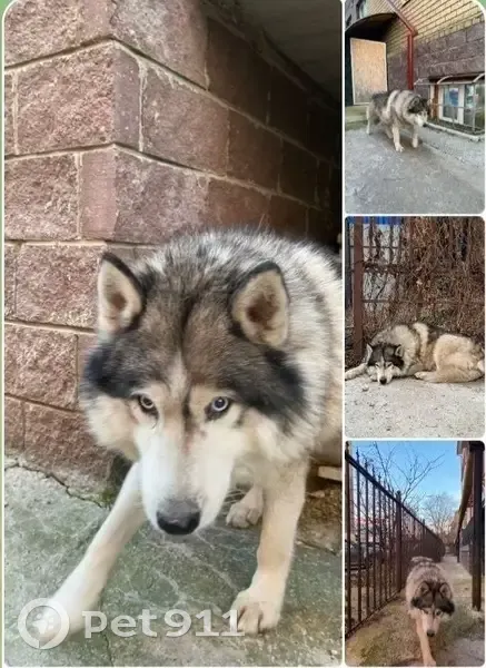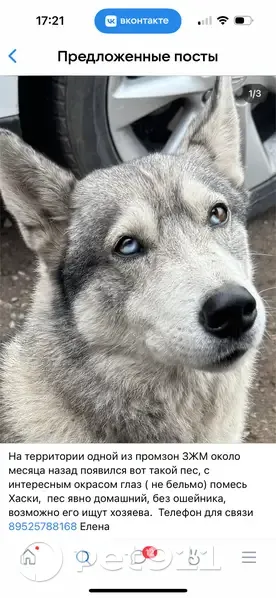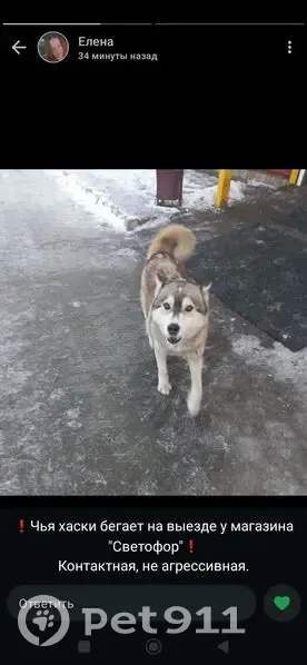 На восточном входе на столбы хаски потеряшка...