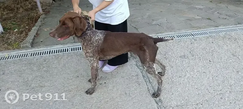 Коричневый курцхаар молодой, с ошейником чёрн...