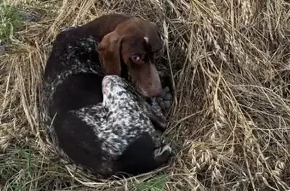 Порода Курцхаар, коричневые пятнышки, на поло...