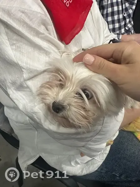 Маленькая белая собака с коричневой мордой и...