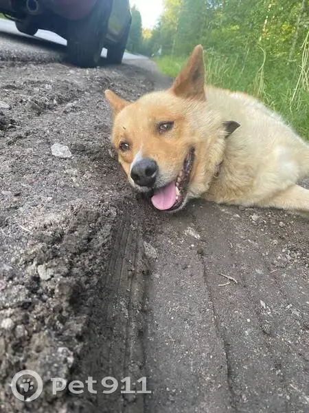 Найдена сбитая собака рыжего окраса, с ошейни...