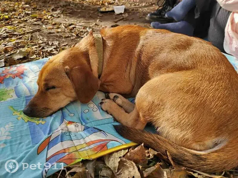Рыжий окрас, гладкошёрстная, в ошейнике, нашл...