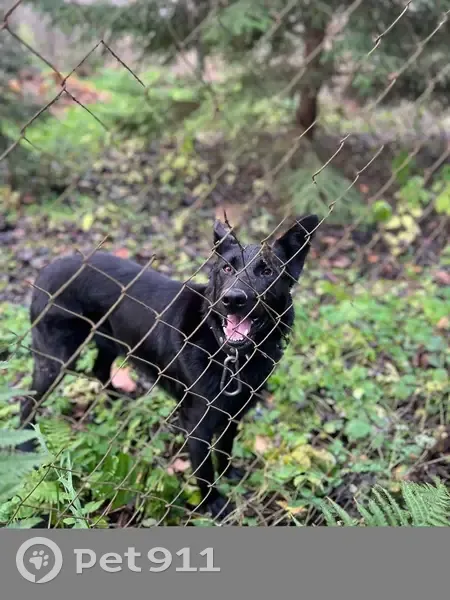 Молодой кобель черного окраса, с ошейником, л...