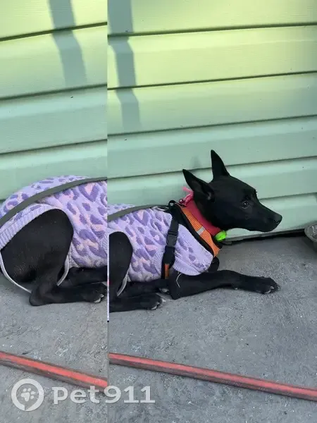 Найдена собака девочка чёрного окраса в одежд...