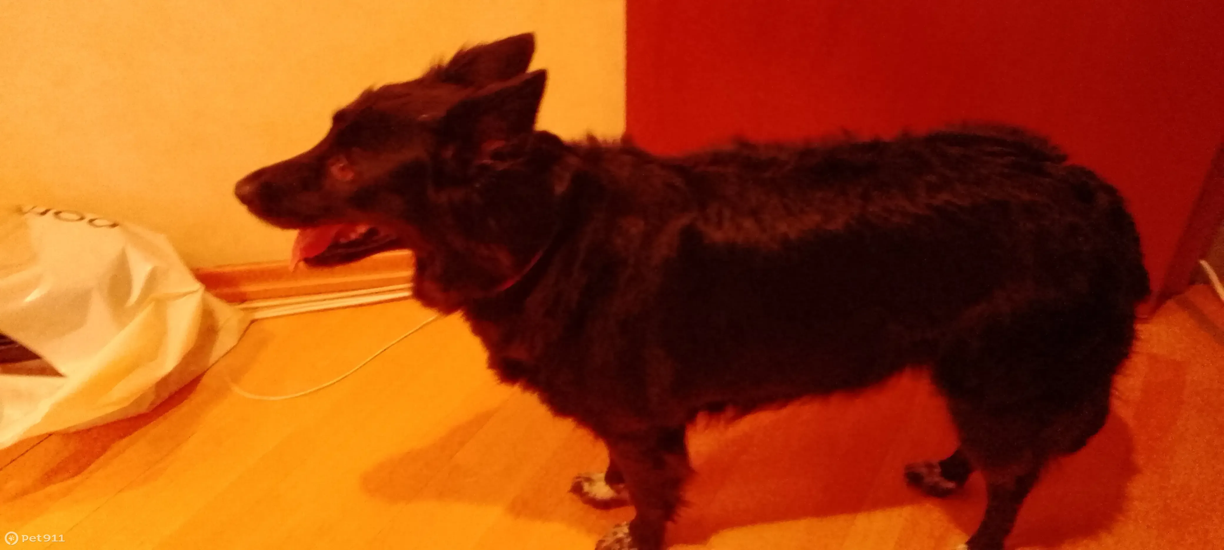 Не большая,черная собака,оранжевой ошейник
