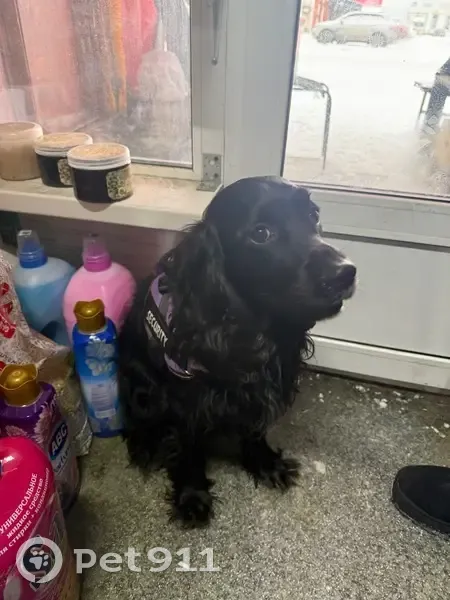 Найдена собака, Челябинск, фото: Найден собака, Троицкий тракт, 46/1, Челябинск - чёрный кокер спаниель с фиолетовой шлейкой