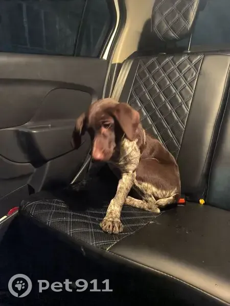 Щенок, метис Курцхаара, хвост купирован. Сиде...