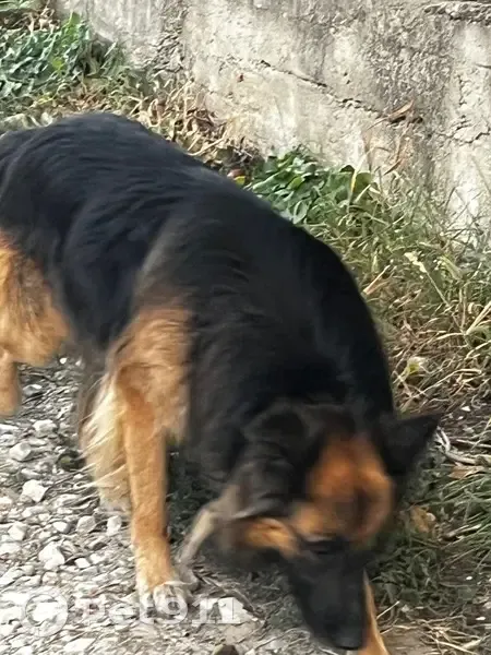 Овчарка, в ошейнике цвета хаки, без агрессии,...