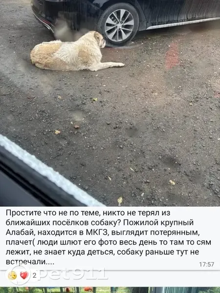 Найдена собака Алабай, СНТ Раменье, бегает уж...