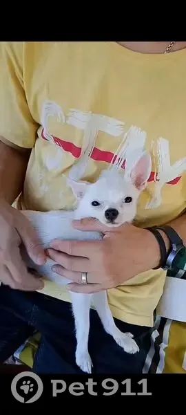 Белая собачка , похожа чихуахуа за ушком черн...