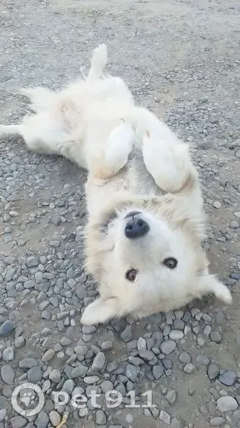 Белая собака, среднего размера, глаза карие,...