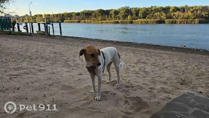 Найдена собака в шлейке на левом берегу Дона,...