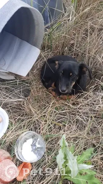 Малышь пришёл сам, чёрный окрас,грудка и лапр...