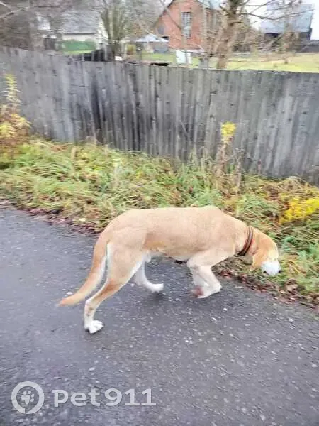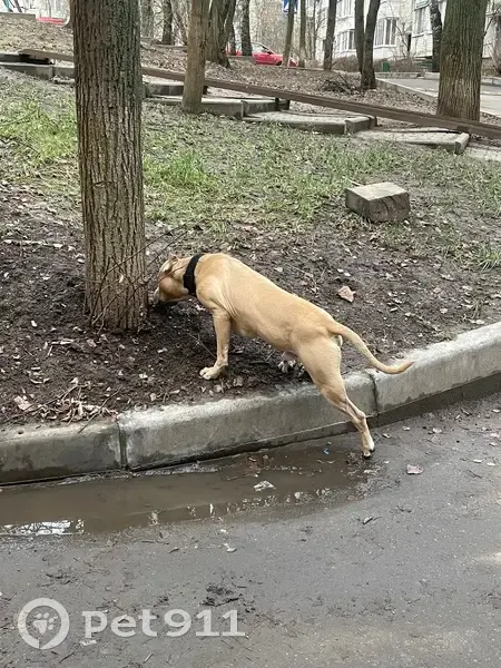 Золотистый стафф,щенок. На нем был ошейник. Н...