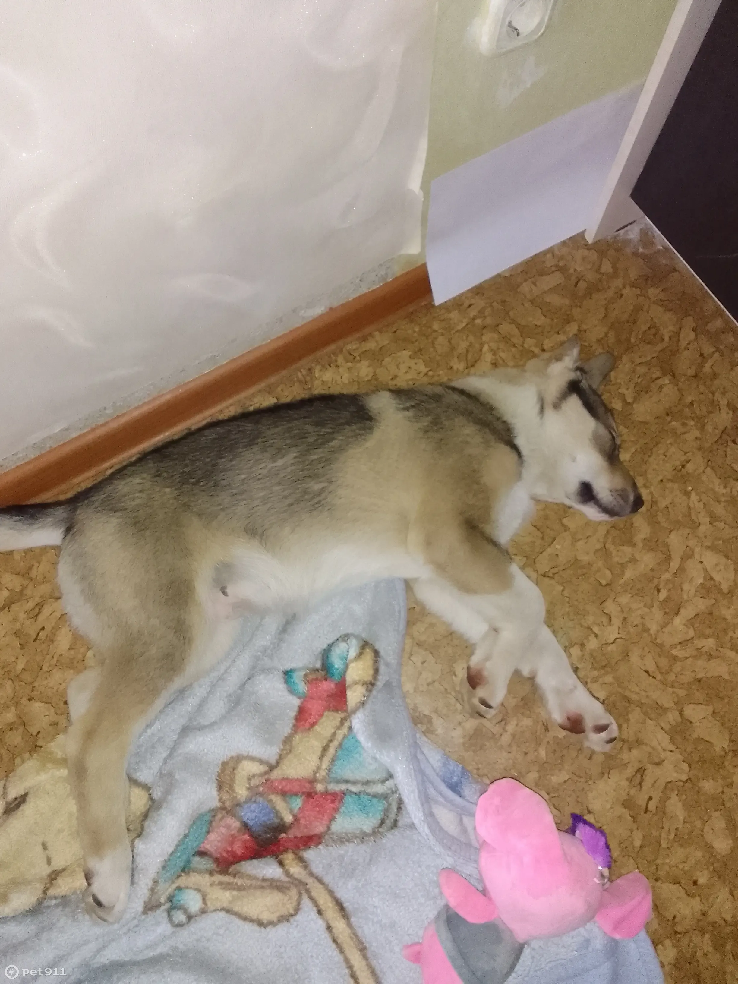 Щенок похож на хаски, шли с гостей,он бегал п...