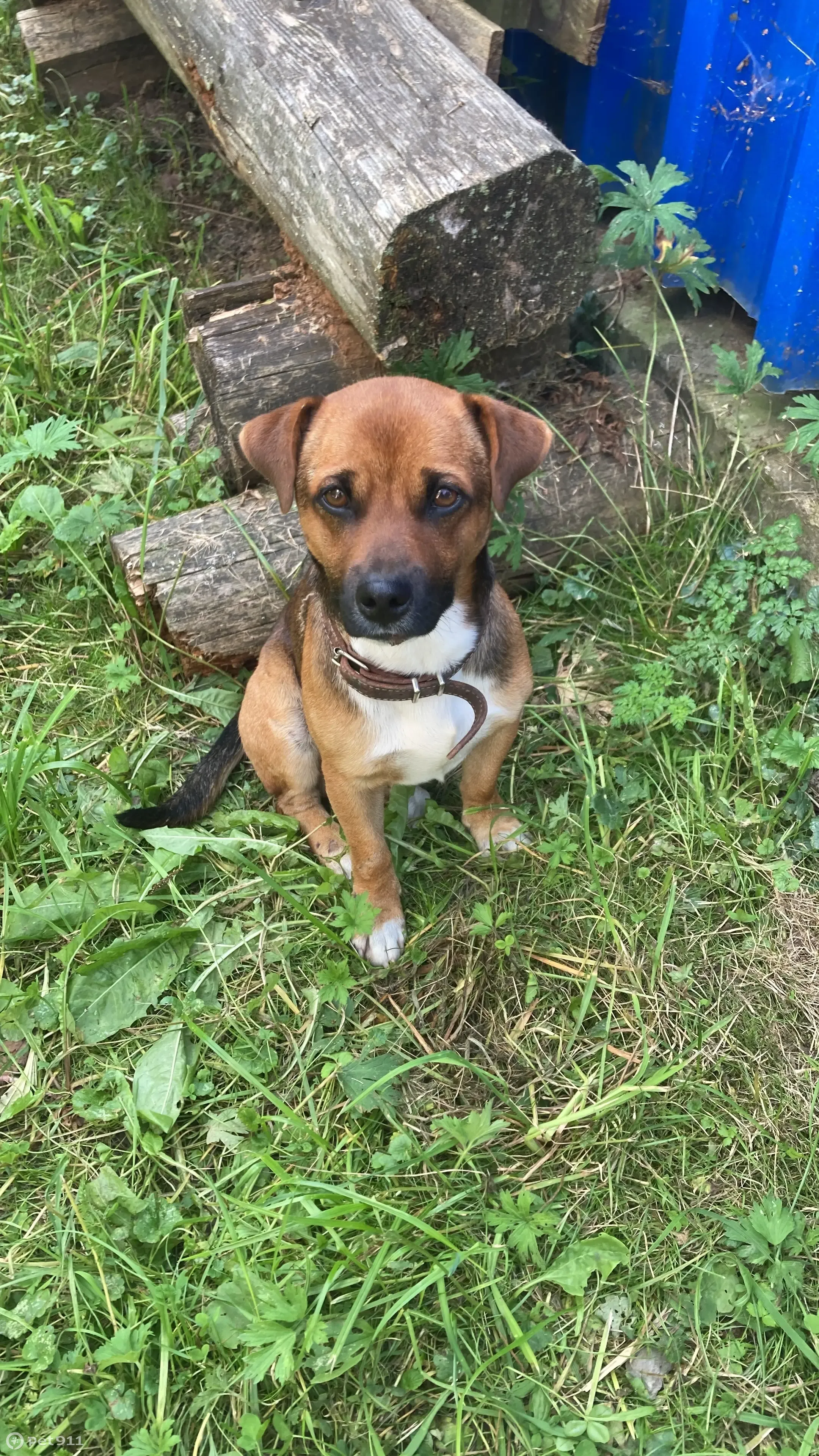18.08 найден Кобель, в кожаном ошейнике с бол...