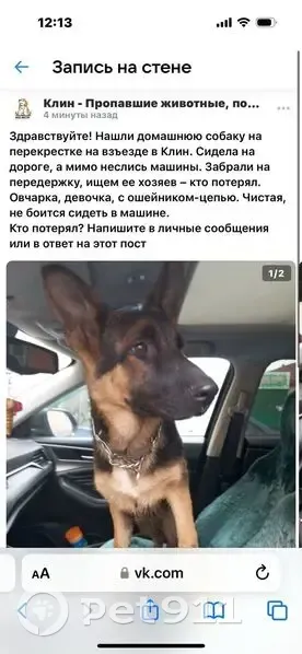 Найдена собака, Московская область, фото: Овчарка найдена в Клину, МО