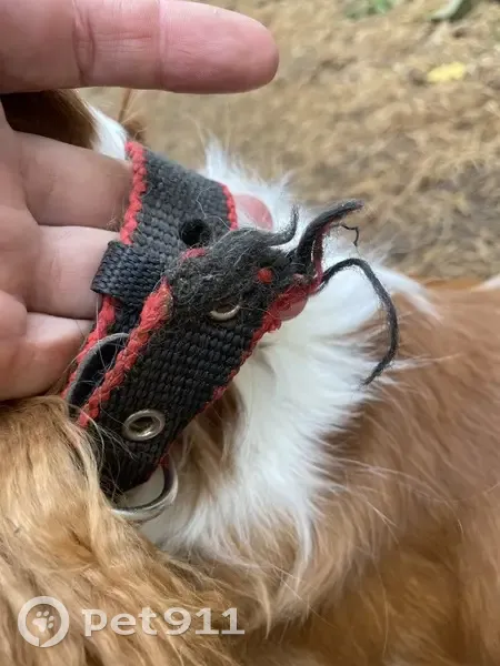 07.10.25. Светло рыжая собака, в бордовом оше...