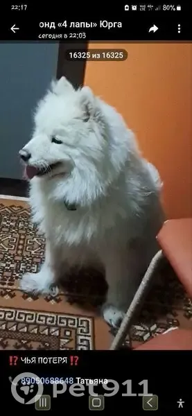 Найдена собака, Юрга, фото: Найдена собака, улица Исайченко, Юрга - самоедская лайка, белая и пушистая