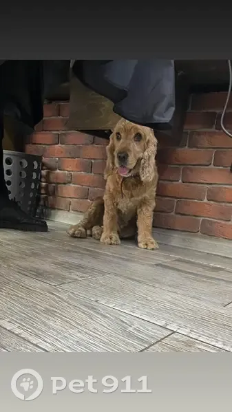 Окрас золотисто-коричневый, в ошейнике, хвост...