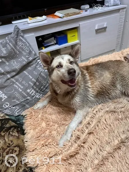 Найдена собака. Хаски ( метис), глаза карие,...